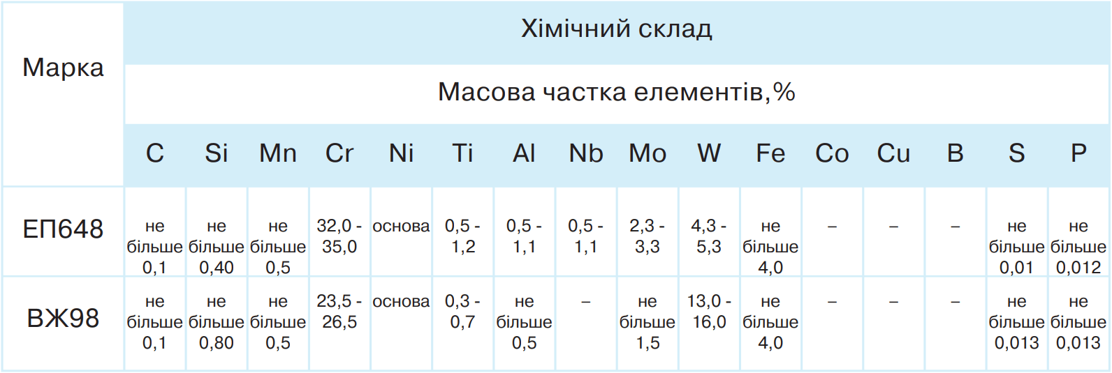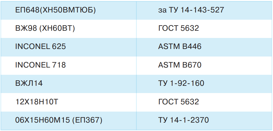 Порошки з жароміцних сталей на основі нікелю, які вже освоєні на нашому виробництві: