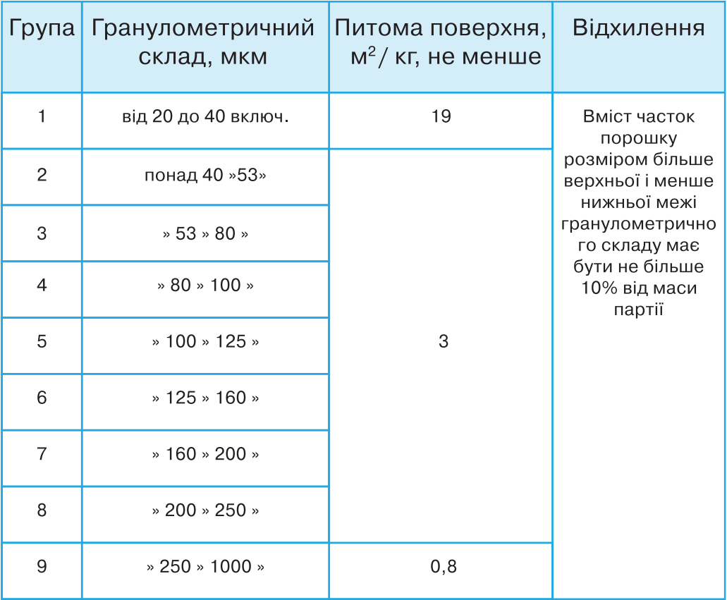 Для порошків титанових сплавів за ГОСТ 19807 та ОСТ 1-90013 з розміром частинок менше 100 мкм допускається збільшення вмісту кисню до 0,20 %.