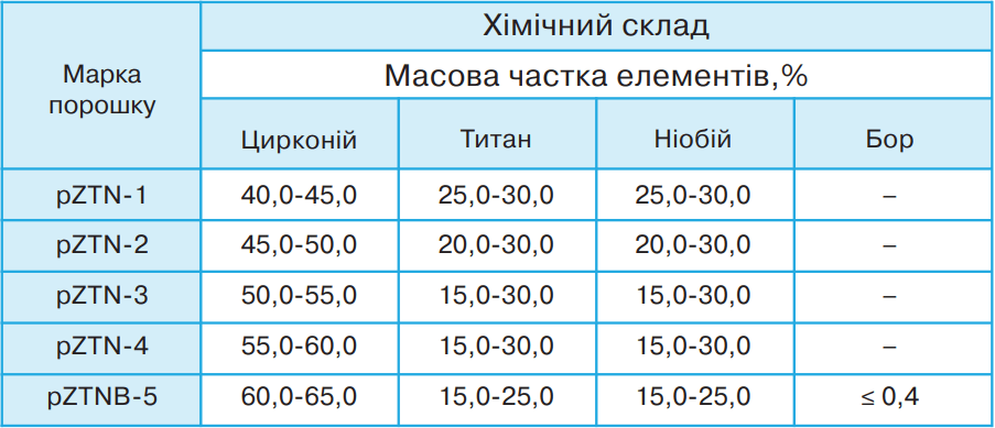 з титанових, нікелевих, цирконієвих, залізних, кобальтових