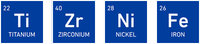 of titanium, nickel, zirconium, iron, cobalt