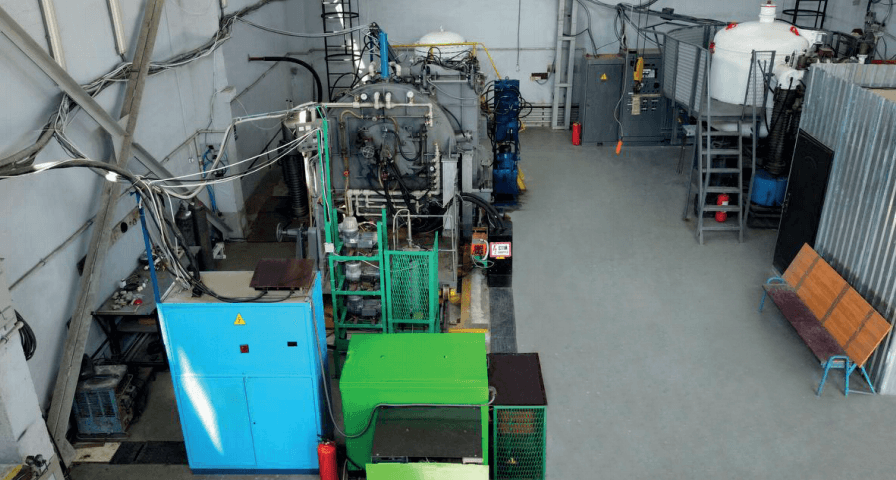 The unit is used to obtain spherical powders by melting technology and simultaneous spraying of a cylindrical workpiece with a stream of ionized inert gas – plasma, according to the international classification: Plasma Rotating Electrode Process (PREP).