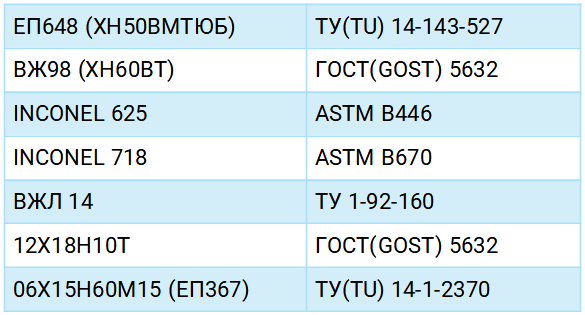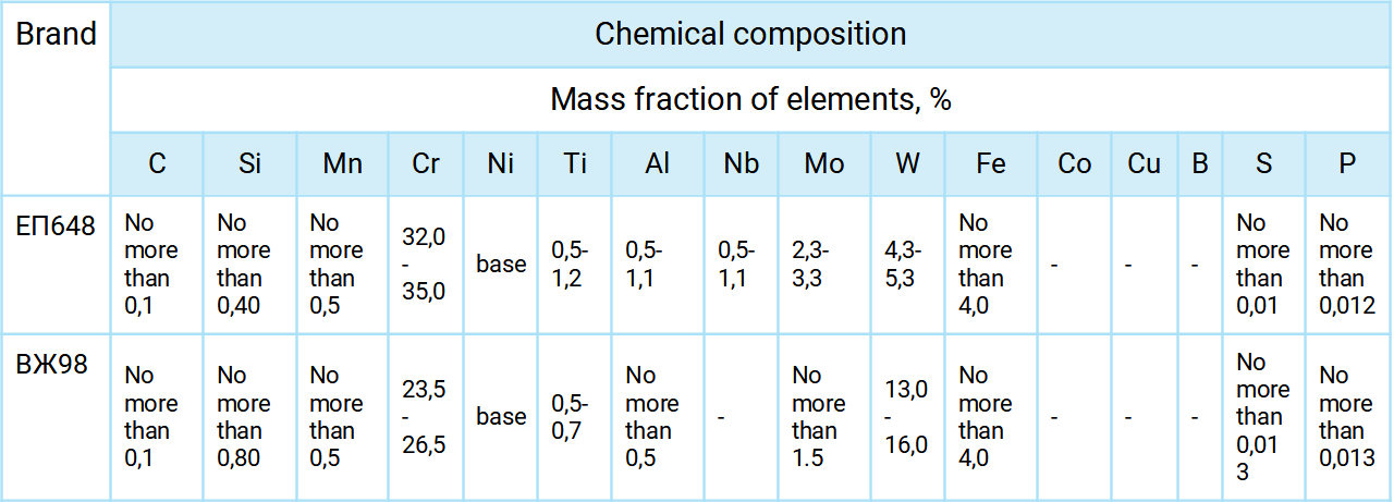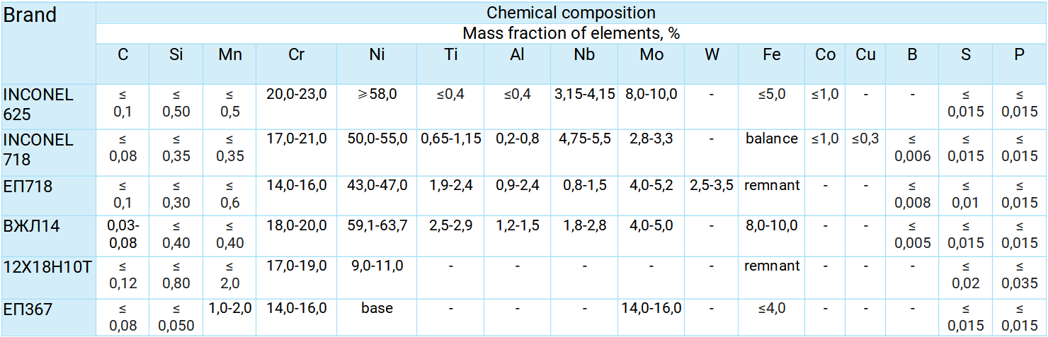 Powders from heat-resistant steels on the basis of nickel, which are already mastered at our production: