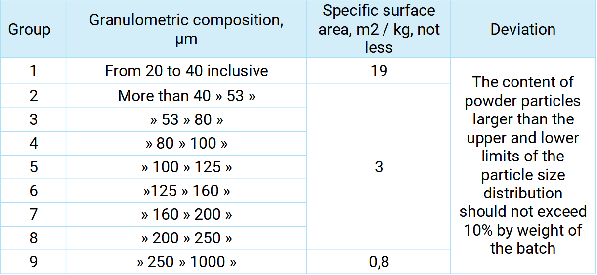 Based on these requirements, our company has developed quality criteria for its powders at the level of European standards.
